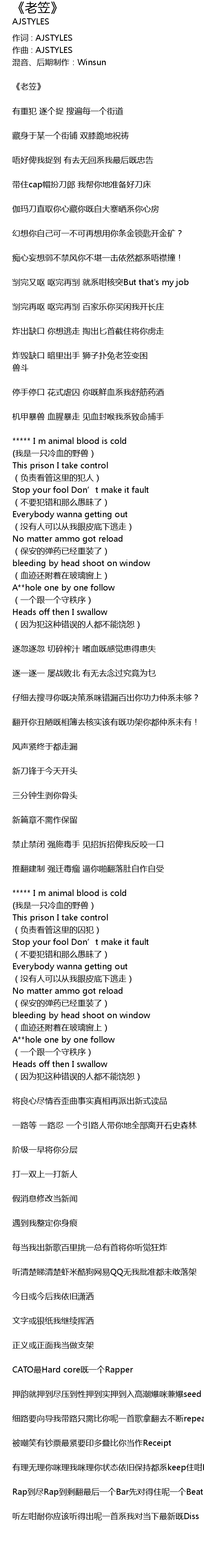 | Rap dao jin Rap dao sheng fan zui hou yi ge Bar xian dui de zhu ne yi ge Beat | |