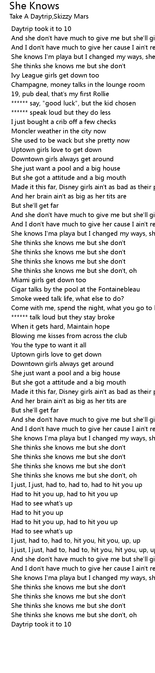 She thinks she knows me but she don't |