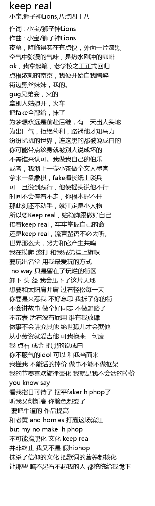 | jiē zhe keep real, láo láo zhǎng wò zì jǐ de mìng | |
