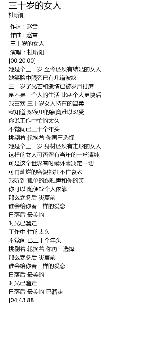 | [00:00.00] | sān shí suì de nǚ rén |