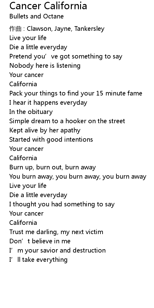| Song | Cancer California |