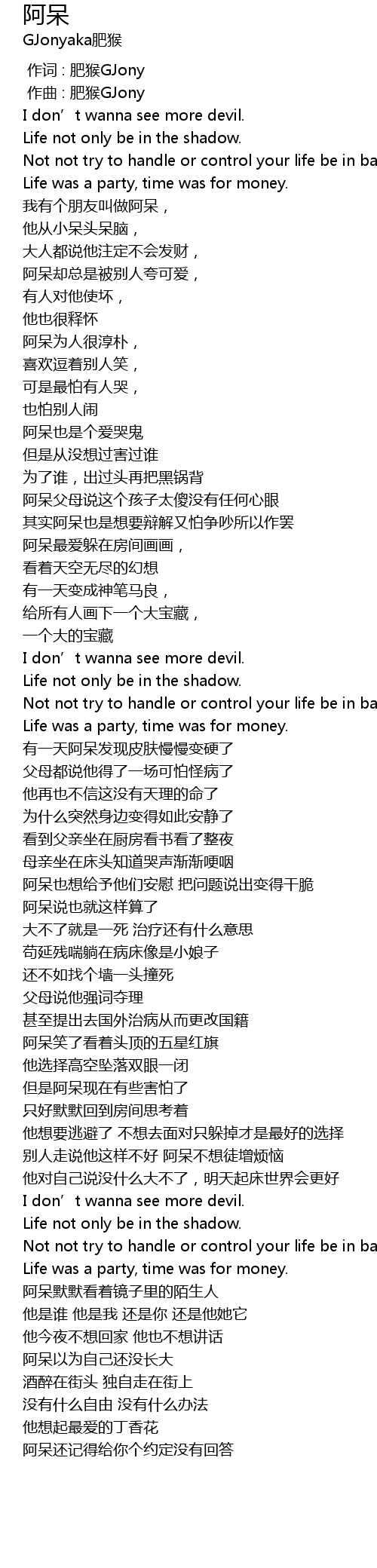 | [00:43.142] | 我有个朋友叫做阿呆, |