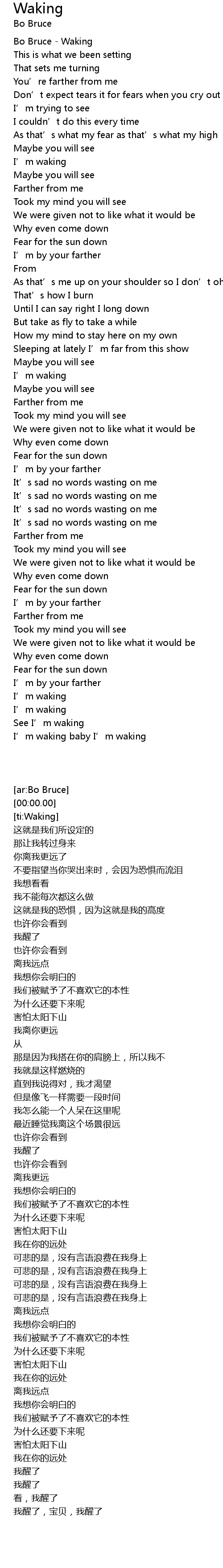 | [00:00.00] | Bo Bruce Waking |