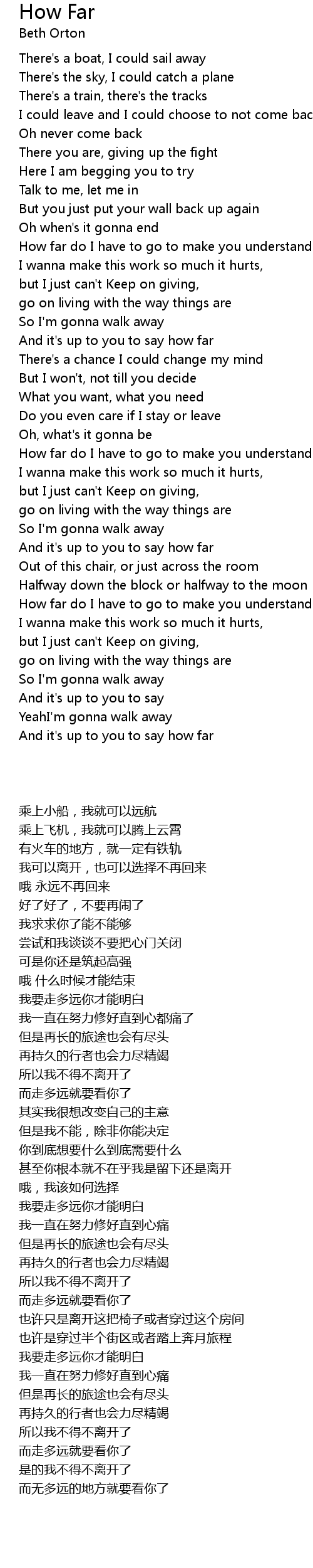 How far do I have to go to make you understand |