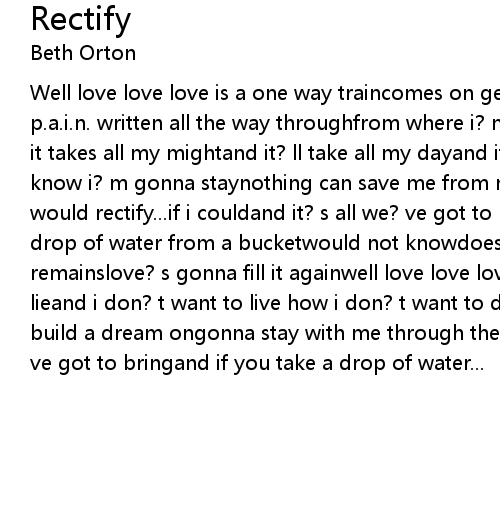 Well love love love is a one way traincomes on gentle as a hurricaneit? s got p.a.i.n. written all the way throughfrom where i? m set looking over at youand it takes all my mightand it? ll take all my dayand if it wants me to comewell i know i? m gonna staynothing can save me from my lifebut for love my mistakes i would rectify...if i couldand it? s all we? ve got to leaveand if you take a drop of water from a bucketwould not knowdoes not showlove is all that remainslove? s gonna fill it againwell love love love will make truth from a lieand i don? t want to live how i don? t want to dieso give me one kiss to build a dream ongonna stay with me through the changing seasonsand it? s all we? ve got to bringand if you take a drop of water... |