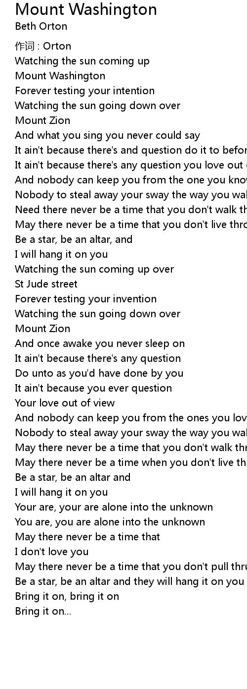 | Song | Mount Washington |