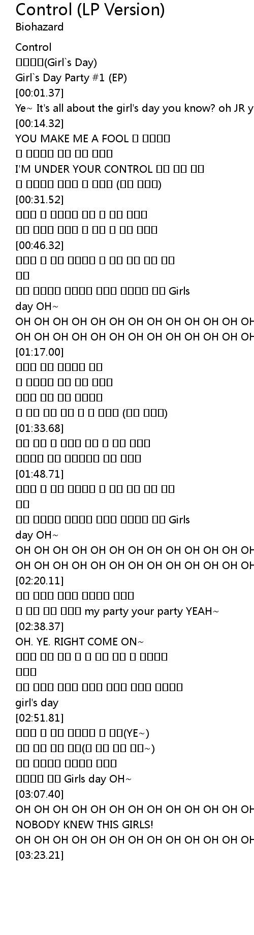 | [00:22.75] | I'M UNDER YOUR CONTROL 너를 맡겨 줄래 |