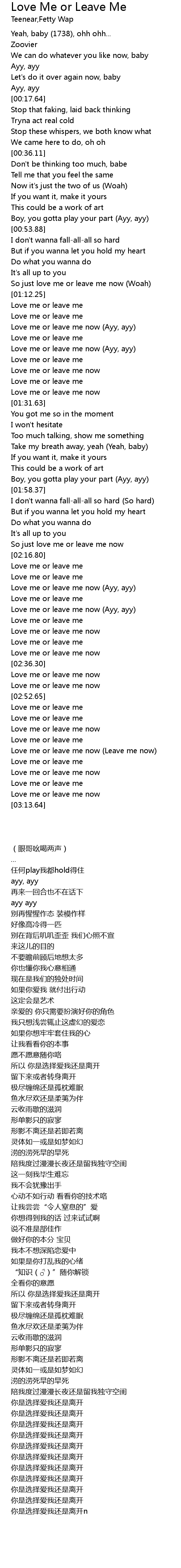 | [01:08.33] | So just love me or leave me now (Woah) |