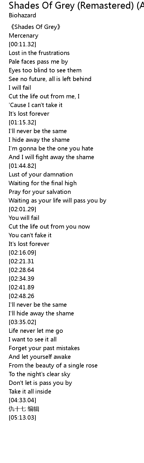 | [00:00.68] | 《Shades Of Grey》 |