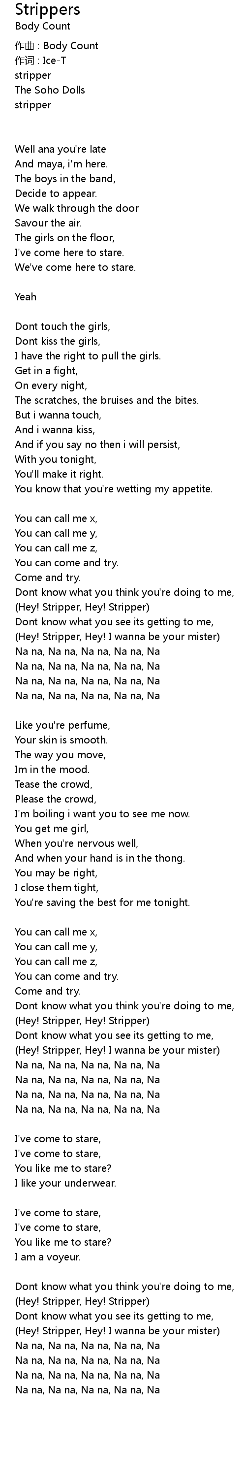| (Hey! Stripper, Hey! I wanna be your mister) | |