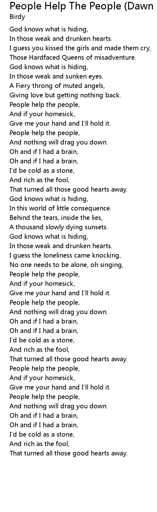 People Help The People (Dawn Golden and Rosey Cross Remix) Lyrics