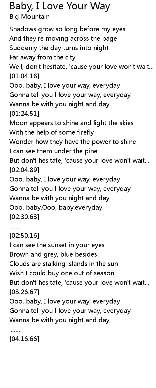 Ooo, baby, I love your way, everyday |