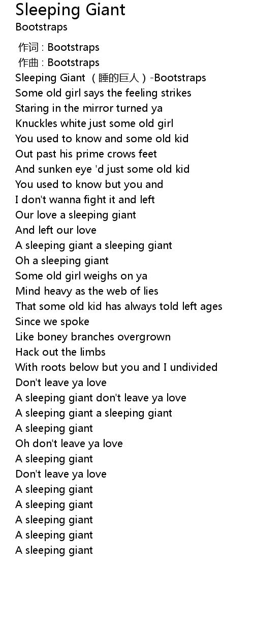 | [00:00.00] | Sleeping Giant shuì de jù rén Bootstraps |