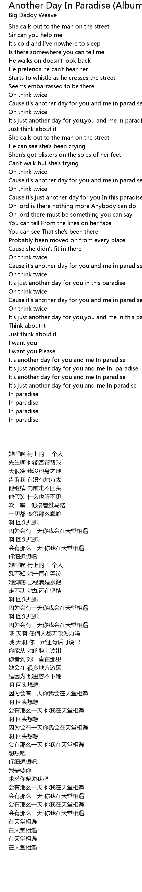 Cause it's just another day for you In this paradise |