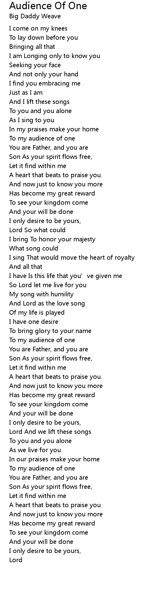 | Song | Audience Of One |