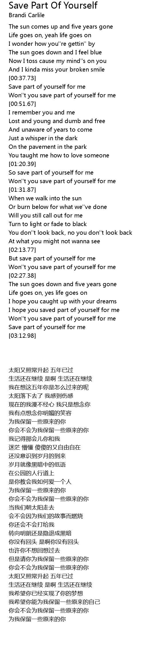 [03:03.70] Won''t you save part of yourself for me