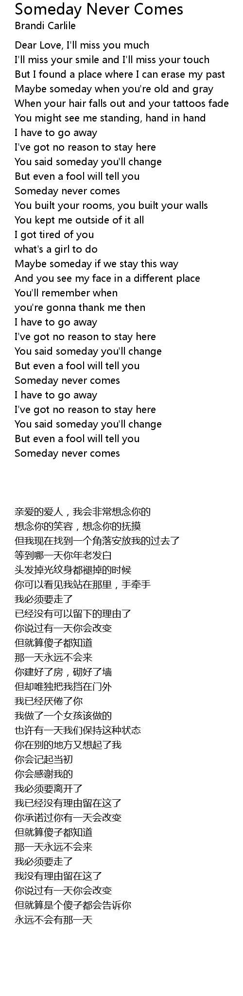 Someday never comes |