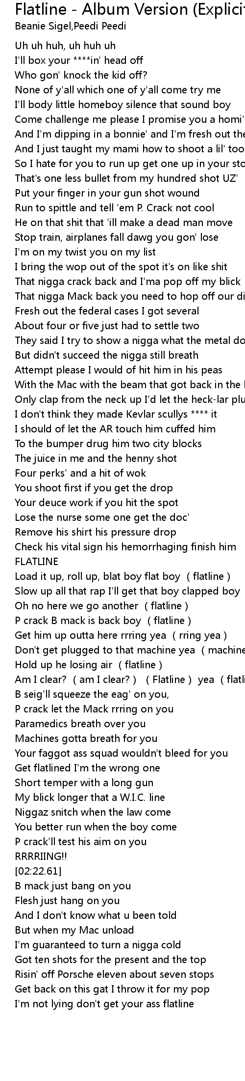 | [02:37.45] | I'm not lying don't get your ass flatline |