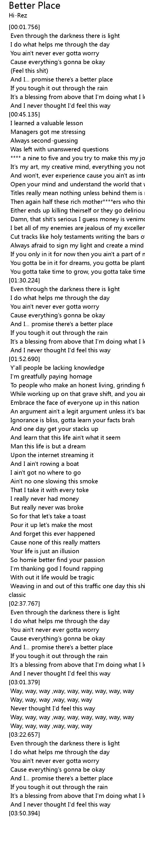 | [02:48.785] | And I... promise there's a better place |
