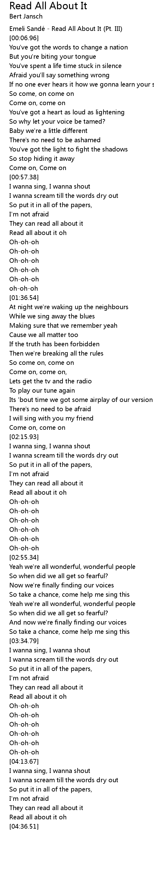 | [00:00.00] | Emeli Sandé Read All About It Pt. III |