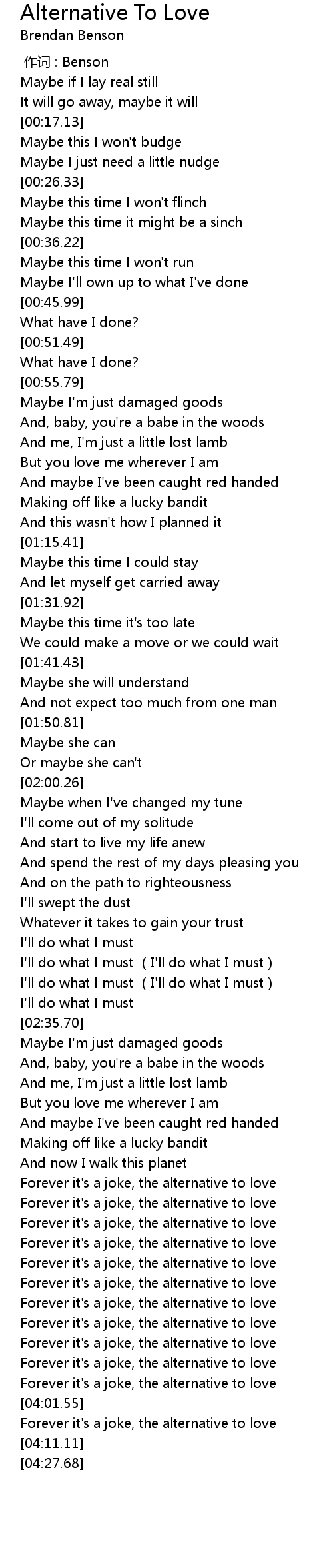 | [03:33.03] | Forever it' s a joke, the alternative to love |