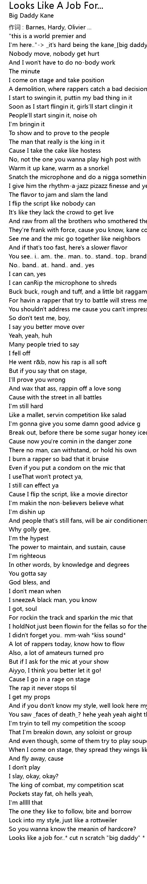 | I' m here.." _it' s hard being the kane_ big daddy kane | |