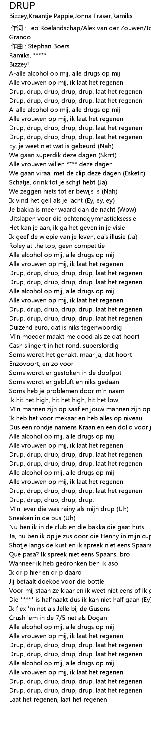 | [00:12.31] | Alle vrouwen op mij, ik laat het regenen |