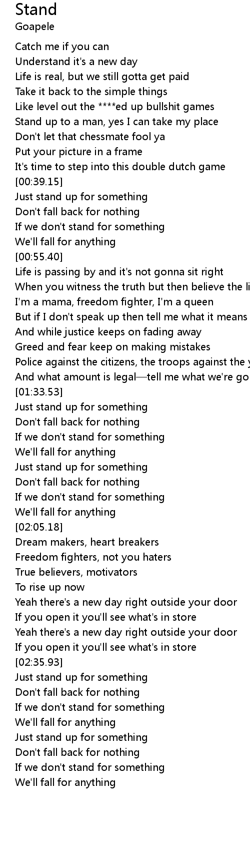 | [00:39.93] | Just stand up for something |