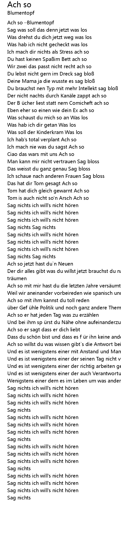| Song | Ach so |