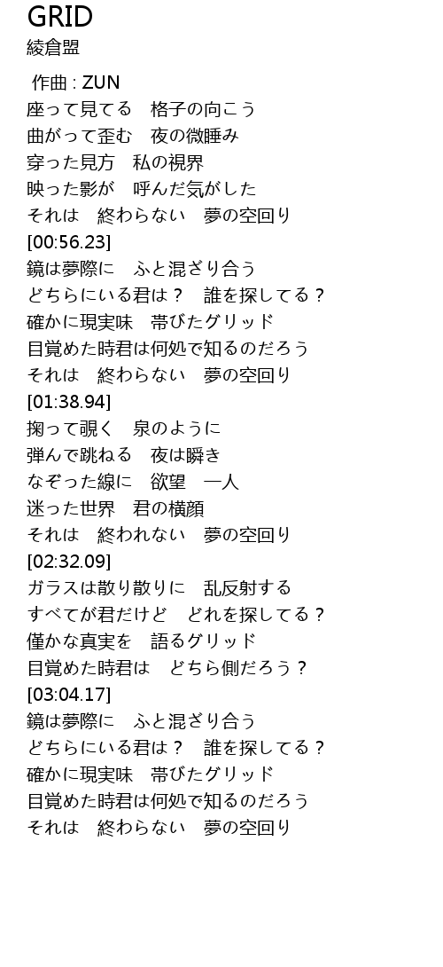 | [02:52.93] | 僅かな真実を 語るグリッド |