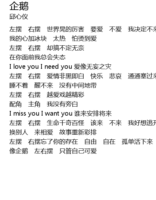 | 左摆 右摆 世界晃的厉害 要爱 不爱 我决定不来 | |