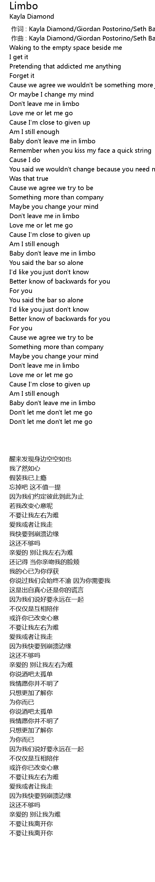 | [02:38.19] | Baby don't leave me in limbo |