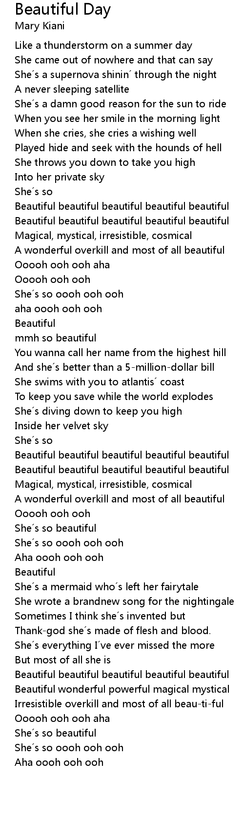 | [03:09.43] | Beautiful wonderful powerful magical mystical |