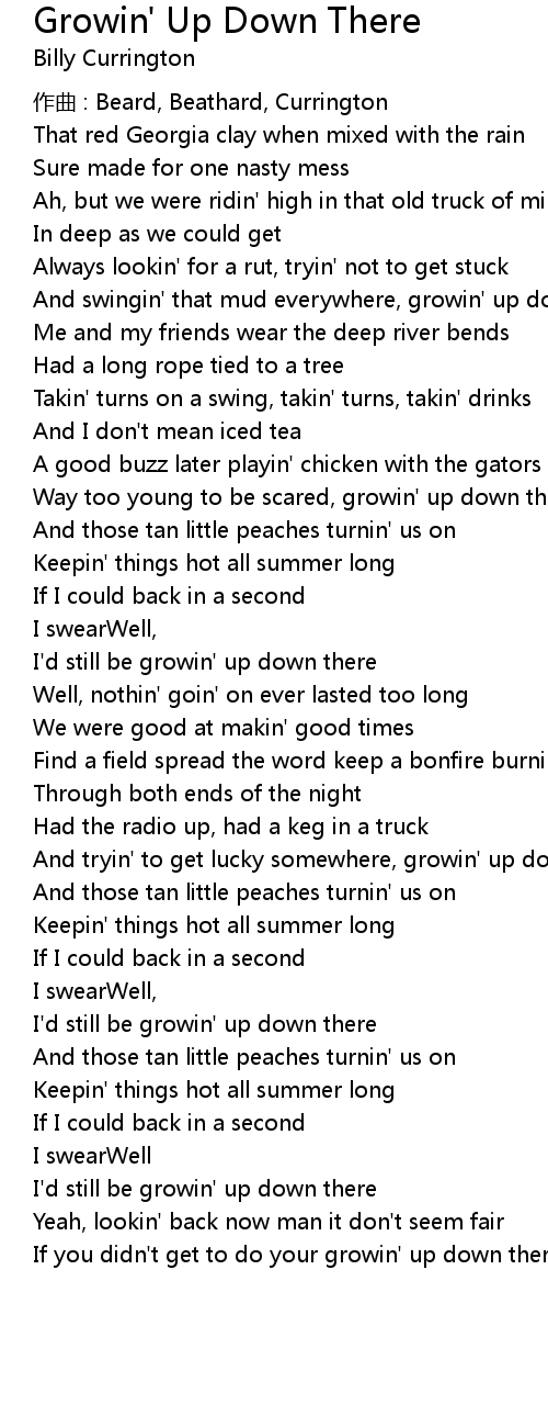 | And tryin' to get lucky somewhere, growin' up down there | |
