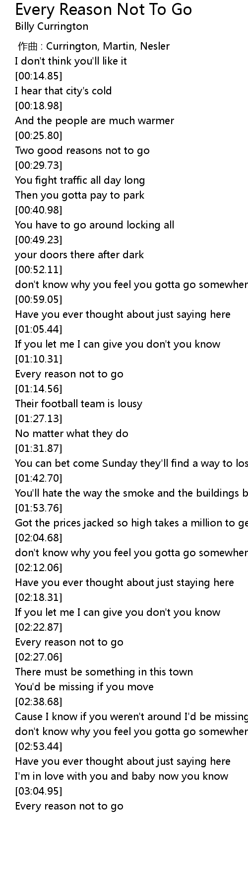 | [03:06.69] | Every reason not to go |