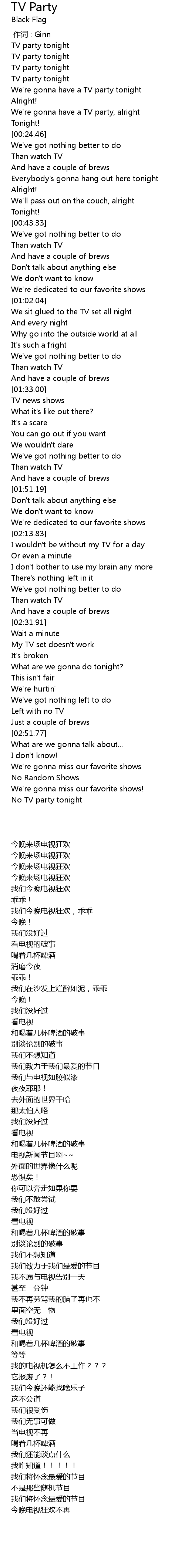 | [03:15.21] | No TV party tonight |