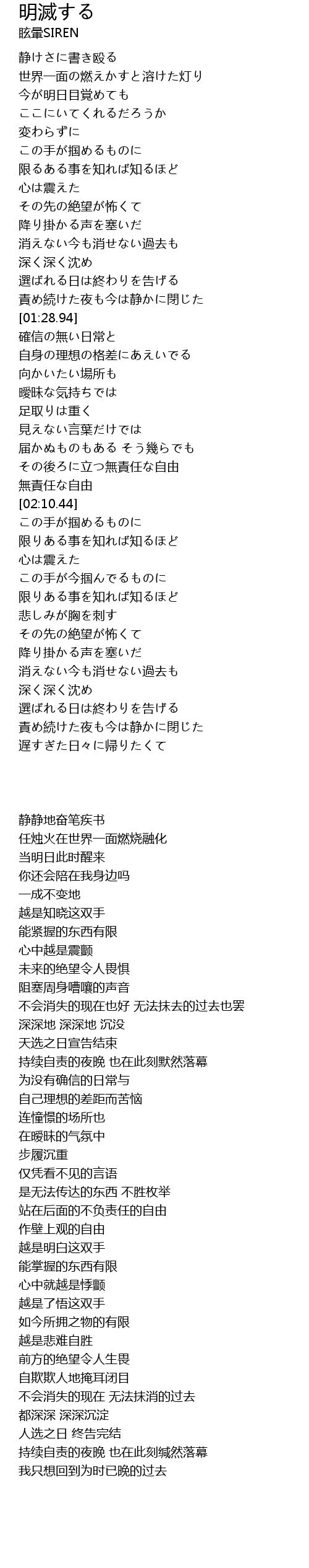 | [01:21.10] | 責め続けた夜も今は静かに閉じた |