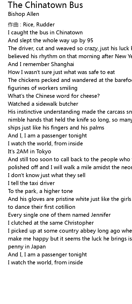 | Song | The Chinatown Bus |