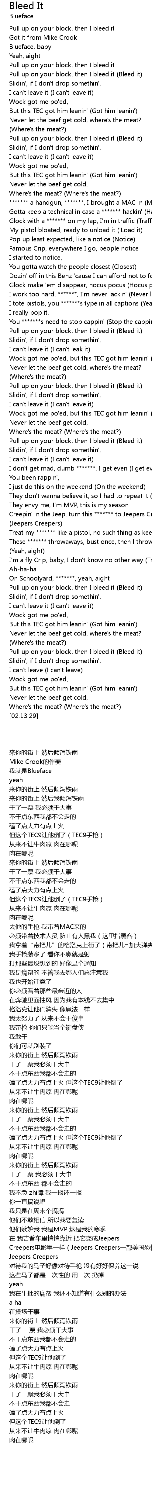| [01:53.21] | Pull up on your block, then I bleed it (Bleed it) |