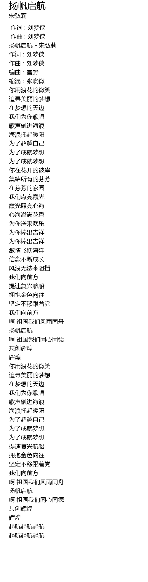 | [00:04.45] | 扬帆启航 - 宋弘莉 |