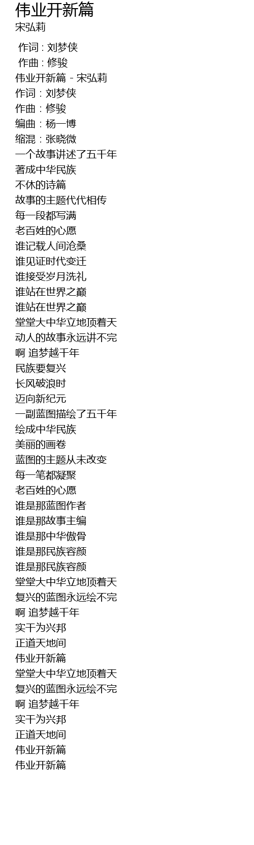| [00:03.04] | 伟业开新篇 - 宋弘莉 |
