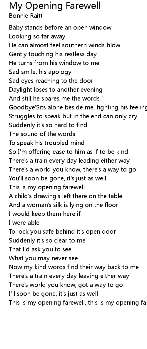 This is my opening farewell, this is my opening farewell |