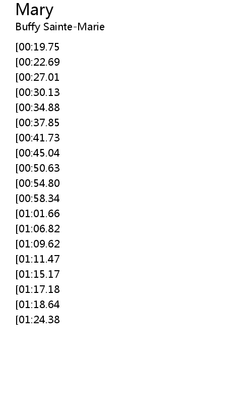 | [02:36.42][01:15.17] | 玛莉 玛莉 |