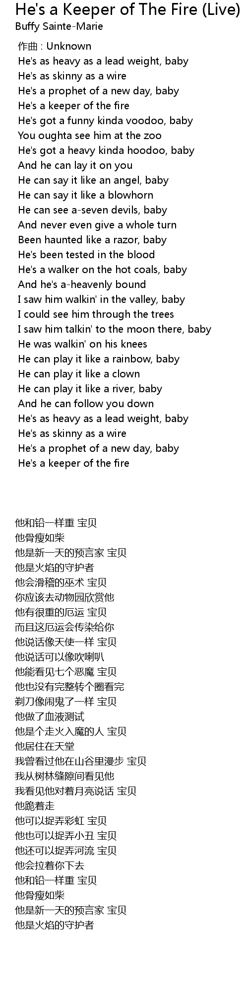 | [01:16.373] | He' s a walker on the hot coals, baby |
