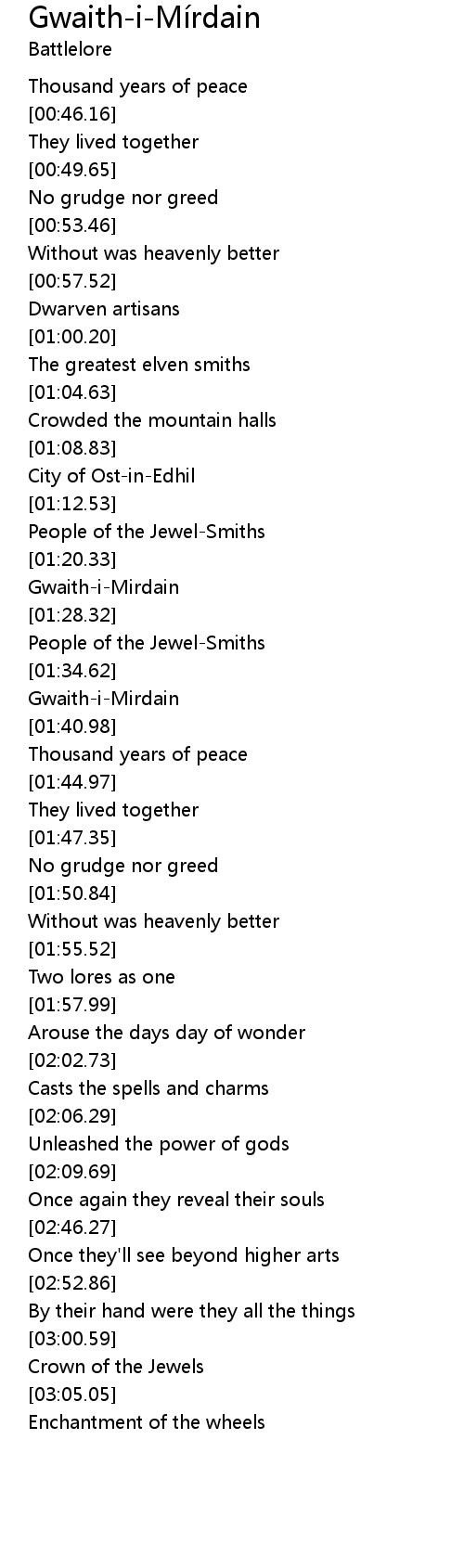 Gwaith-i-Mírdain GwaithiMi rdain Lyrics