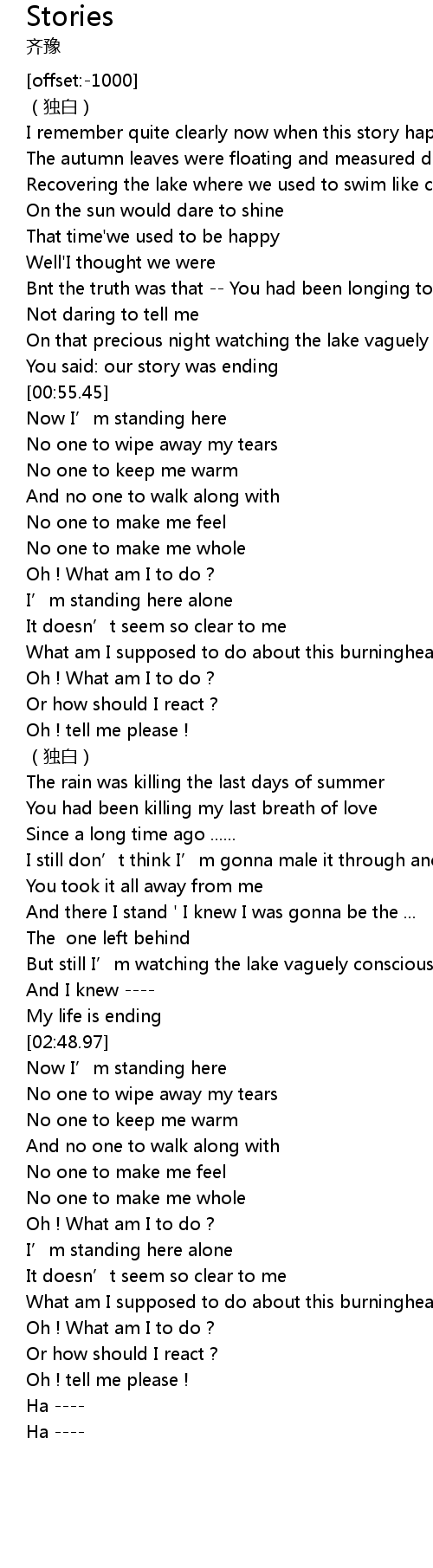 | [00:32.31] | Bnt the truth was that -- You had been longing to leave me |