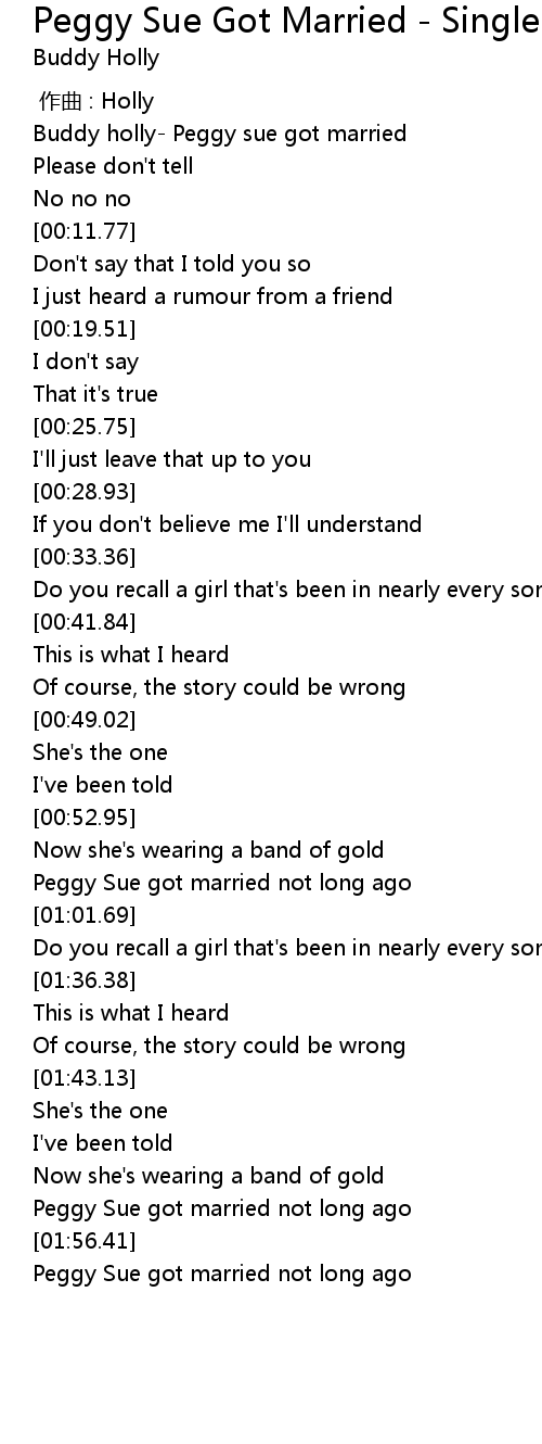 | [00:00.54] | Buddy holly- Peggy sue got married |