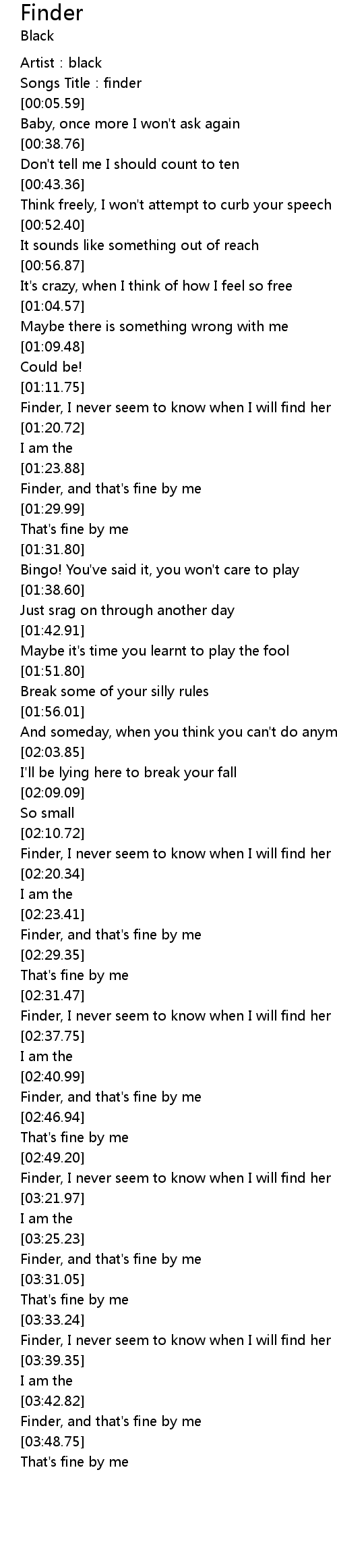 | [03:17.24] | Finder, I never seem to know when I will find her |