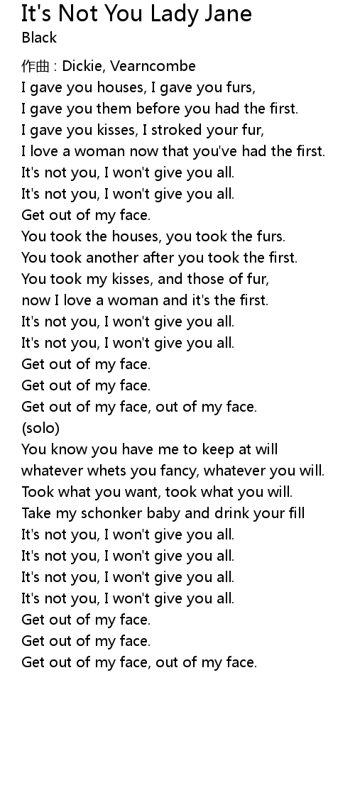 | Song | It's Not You Lady Jane |
