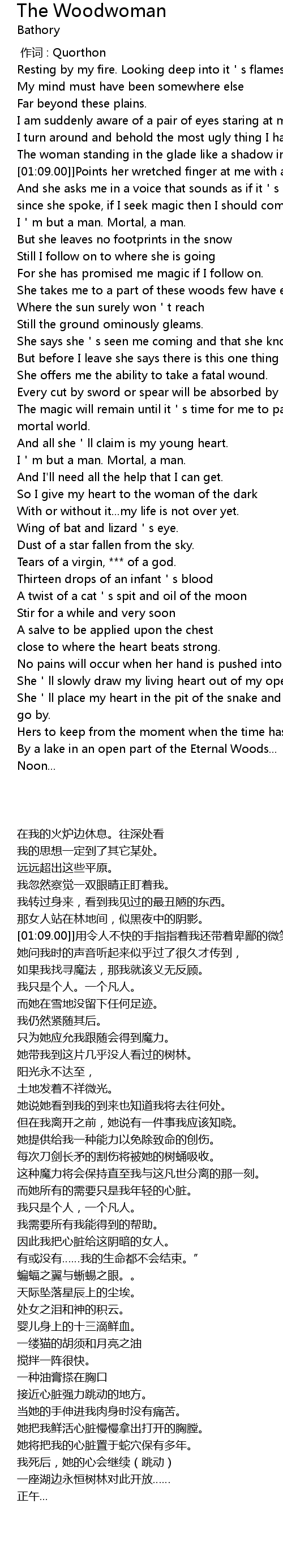 | [01:01.00] | The woman standing in the glade like a shadow in the night |